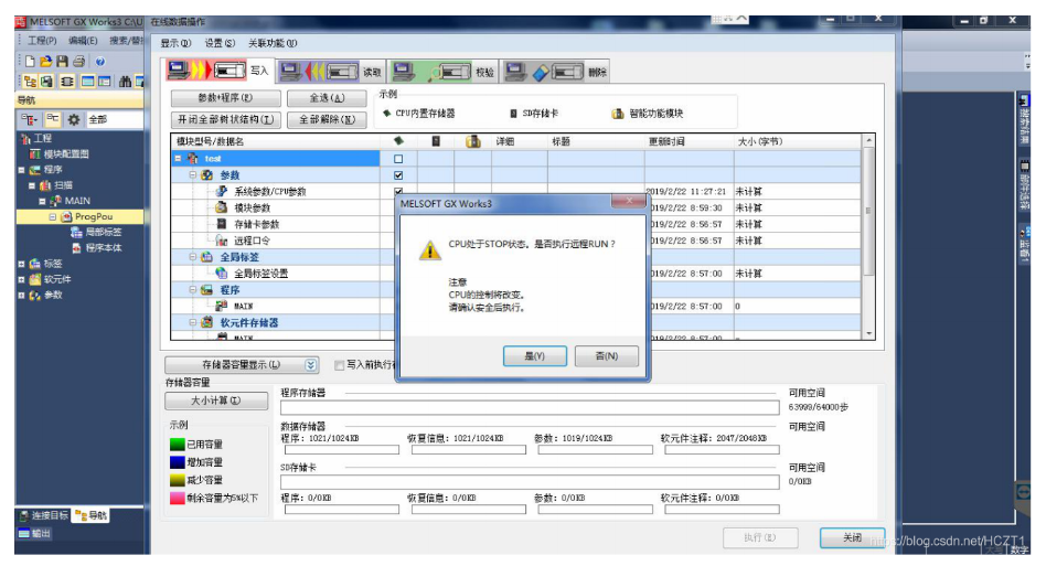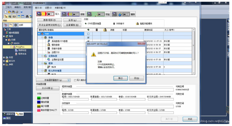提示是否執(zhí)行可編程控制器的寫入,點(diǎn)擊【是】。