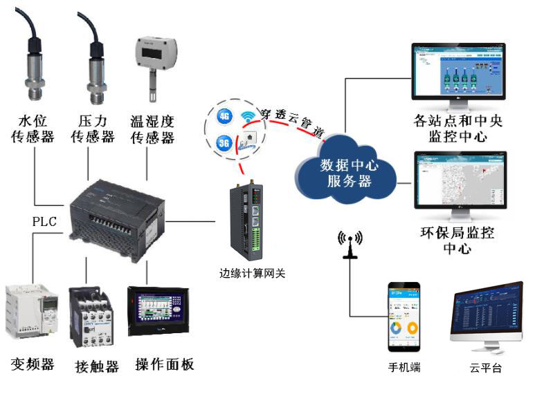 工業(yè)網(wǎng)關(guān)連接到plc采集相關(guān)數(shù)據(jù),并通過網(wǎng)絡(luò)傳輸?shù)轿锫?lián)網(wǎng)云平臺,進(jìn)行數(shù)據(jù)分析和設(shè)備遠(yuǎn)程監(jiān)控調(diào)試。工業(yè)物聯(lián)網(wǎng)云平臺是一個(gè)專業(yè)的物聯(lián)網(wǎng)軟件平臺。通過手機(jī)和PC端的構(gòu)建,可以實(shí)現(xiàn)PLC的遠(yuǎn)程監(jiān)控和設(shè)備的智能化管理。