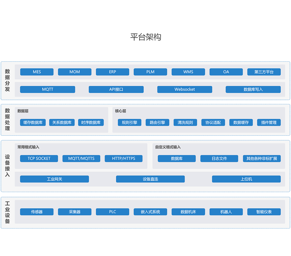 綜上所述,華辰智通的碼垛機(jī)設(shè)備狀態(tài)監(jiān)控和數(shù)據(jù)采集方案,能夠幫助客戶實現(xiàn)對設(shè)備的實時監(jiān)測和管理,同時也能為客戶提供便捷、高效的數(shù)據(jù)支持和解決方案。我們的服務(wù)團(tuán)隊具有專業(yè)的技術(shù)知識和豐富的實踐經(jīng)驗,為客戶提供全過程、全方位的技術(shù)支持和服務(wù)保障。我們始終將客戶的需求放在第一位,為客戶提供高質(zhì)量、高效率的解決方案,讓客戶充分享受智能工廠帶給企業(yè)的便捷和優(yōu)勢。